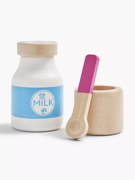 - mit Schalterattrappe, zwei Toastscheiben, Marmeladenbecher mit Spatel, Milchflasche, Teller, Spiegelei und zwei Stückchen Butter