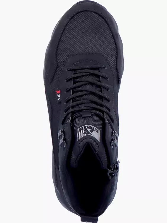 Fester Sitz garantiert! In diesem Sneaker von Rieker EVOLUTION ganz in Schwarz lässt es sich aushalten: Eine besondere Komfortweite sorgt für einfaches An- und Ausziehen. Dank der praktischen Reißverschluss-Schnür-Kombi ist idealer Tragekomfort gesichert. Bei Bedarf lässt sich die extra weiche Soft-Einlegesohle mit nur einem Handgriff austauschen. Einfach easy!